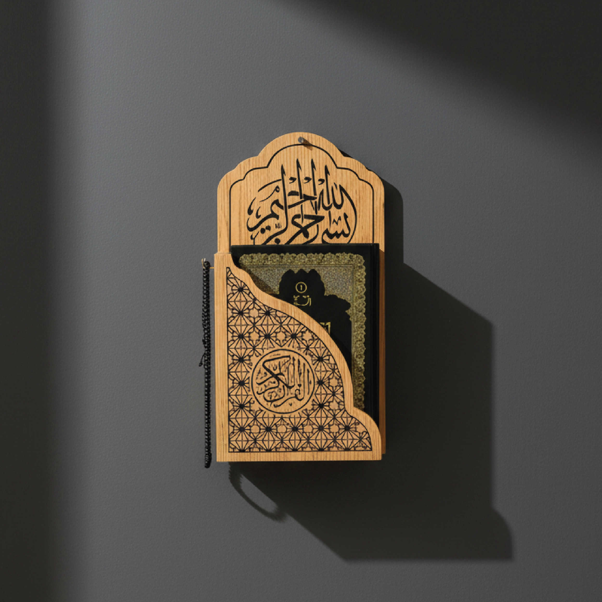 - Wall Hanging Design – Saves space and keeps Quran safely elevated