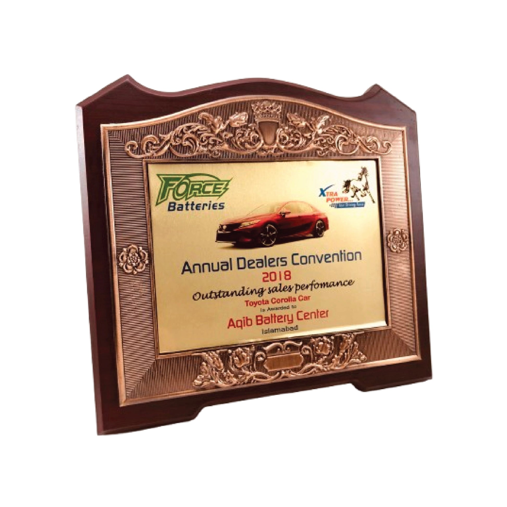 Premium Wooden Frame Trophy with Golden Touch, crafted especially for dealer recognition and appreciation events.